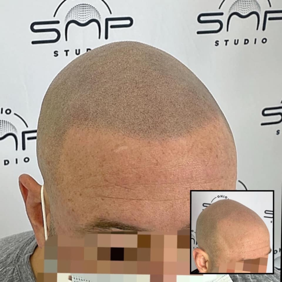 Scalp micro pigmentation is a non-surgical treatment for thinning hair or baldness. Using natural pigments applied directly to the scalp, the treatment simulates the look of closely shaven or buzzcut hair. A hair tattoo for baldness is a very skilled process; it should always be carried out by a trained industry professional, if not, it is quite possible that the results you see in the mirror won’t meet your expectations which could leave you very disappointed. Men’s Scalp micro pigmentation or hair tattoo treatment of Ohio SMP Studio for baldness gives you the appearance of a full head of hair without the pain or lengthy recovery of hair transplant surgery near Latham Township Ohio. However, it’s essential to be aware of the limitations of this type of procedure that it disguises hair loss rather than actually treating it.
