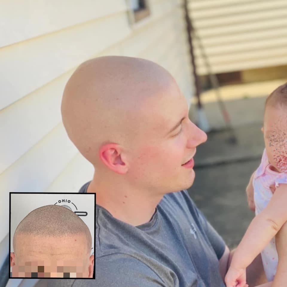 Our hair tattoo can cover all of your scalp if you are completely bald as it is very popular throughout Ohio. The hair tattoo procedure by Ohio SMP Studio can be used on parts of your scalp that are either receding, thinning, balding, or bald. A Scalp micro pigmentation expert, Clayton Rush can also camouflage scars using scalp pigmentation. At Ohio SMP Studio, Clayton Rush uses a microneedle to delicately tattoo a pigment into your scalp and a carefully planned out hair tattoo near Madison County OH. In this way, he gradually forms hair tattoos of specially pigmented (colored) hair follicles in the applied area of the scalp. As a result, you see a realistic impression of a full head of hair and a remarkable appearance. Call us at (419) 569-1630 to schedule a consultation with SMP expert Clayton Rush.