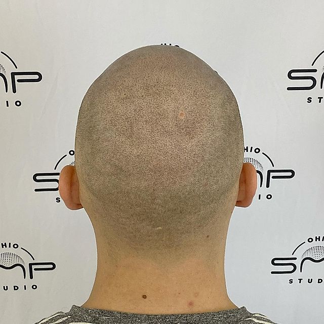 Scalp micropigmentation (SMP) has taken the world by storm, and for good reason! Scalp micropigmentation describes the medical tattooing of the scalp to imitate a full head of shaved hair. This non-invasive procedure utilizes detailed micro-needles to tattoo pigment into the scalp, which produces the look of real, tiny hair follicles that help create a freshly shaven look, or recover the look of fuller hair. It can also be used to camouflage a scar or birthmark. Not even the client can distinguish the tattooed follicles from genuine shaven hair! It’s as much an art as it is a science, so it’s very important to ensure you have a team that is highly experienced with a variety of micropigmentation techniques. That’s where Ohio SMP Studio comes in!