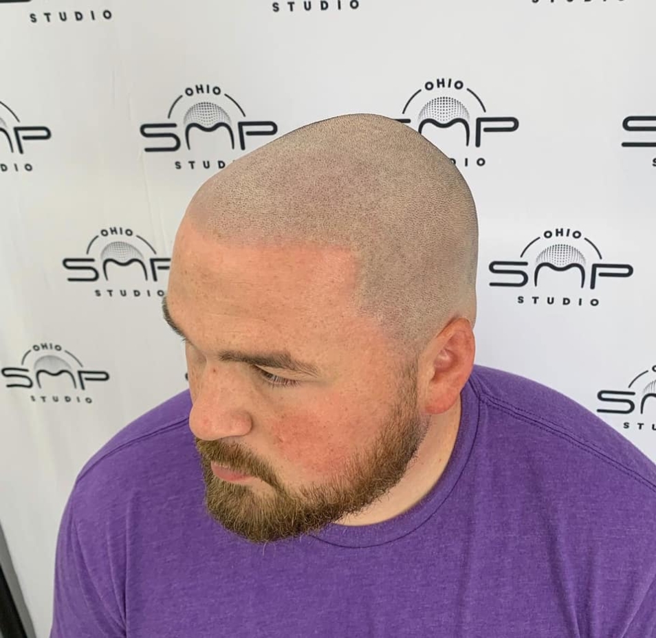 Our hair tattoo can cover all of your scalp if you are completely bald as it is very popular throughout Ohio. The hair tattoo procedure by Ohio SMP Studio can be used on parts of your scalp that are either receding, thinning, balding, or bald. A Scalp micro pigmentation expert, Clayton Rush can also camouflage scars using scalp pigmentation. At Ohio SMP Studio, Clayton Rush uses a microneedle to delicately tattoo a pigment into your scalp and a carefully planned out hair tattoo near Symmes Township OH. In this way, he gradually forms hair tattoos of specially pigmented (colored) hair follicles in the applied area of the scalp. As a result, you see a realistic impression of a full head of hair and a remarkable appearance. Call us at (419) 569-1630 to schedule a consultation with SMP expert Clayton Rush.